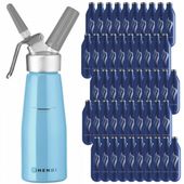 Prezentowany model jest dedykowany do użytku z nabojami do syfonów do bitej śmietany (N2O). Można używać ze wszystkimi nabojami N2O dostępnymi w sprzedaży. Szeroki wybór naboi N2O znajdziesz w naszej ofercie. Ze względu na aluminiową konstrukcję, syfonu nie należy myć w zmywarce. Syfon Hendi 975862 ma niebieski kolor.