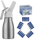 Syfon do bitej śmietany 0,25L + 25 naboi Kayser 4925 to niezastąpione narzędzie w każdej kuchni, które pomoże Ci w łatwy sposób osiągnąć doskonałość kulinarną. Posiadając ten wyjątkowy syfon, odkryjesz radość z przygotowywania świeżej, puszystej bitej śmietany w mgnieniu oka, nadając wyjątkowego smaku Twoim wypiekom, deserom czy kawom.