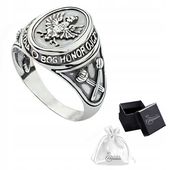Ten sygnet patriotyczny "Bóg Honor Ojczyzna" łączy w sobie bogactwo tradycyjnej symboliki z mistrzowskim jubilerskim wykonaniem. Centralny motyw stylizowanego orła oraz skrzyżowanych buław podkreśla dumę narodową i siłę charakteru.