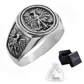 Sygnet Patriotyczny to unikatowy wyrób jubilerski wykonany ze szlachetnego srebra próby 925. Jego wyjątkowy design przedstawia trzy dostojne orły - dumne symbole polskiej tożsamości i siły narodowej.