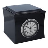 Urna ma kształt eleganckiego pudełka, z delikatnie zaokrąglonymi krawędziami i jest dostępna w kolorze czarnym lub białym. Na froncie znajduje się grawerowana grafika przedstawiająca rozbity zegar, symbolizujący uciekający czas, który dla tej osoby już się zatrzymał. Tuż nad grafiką umieszczona jest spersonalizowana plakietka, na której możesz umieścić imię, daty lub osobiste przesłanie – coś, co najlepiej odda pamięć o ukochanej osobie.