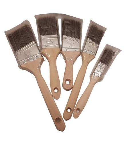 Zestaw pędzli zawiera 2 płaskie pędzle, 25, 50 mm (1", 2"); 3 szczotki kątowe, 1-1/2", 2", 2-1/2" (38, 50, 63 mm). Pędzel kątowy jest idealny do malowania krawędzi ścian, a płaski pędzel do ram okiennych jest idealny do listew ozdobnych.