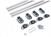 Całość uzupełnia prostota montażu i praktyczność – komplet zawiera wszystkie niezbędne elementy, w tym 4 tory aluminiowe o długości 120 cm, 4 wózki dolne, 4 prowadniki górne, 2 pozycjonery oraz śruby mocujące. To nie tylko system do drzwi przesuwnych, ale klucz do eleganckiej i niezawodnej aranżacji szafy, dostosowany do Twoich potrzeb.