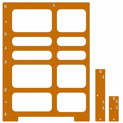 Zestaw zawiera trzy precyzyjne szablony A, B i C, dostosowane do korpusów o wysokości do 720 mm i wyższych dzięki opcjonalnemu dystansowi. Obsługuje system TIP-ON, zapewniając płynne i niezawodne działanie prowadnic w długościach od 270 mm do 550 mm, co gwarantuje stabilność i długoletnią funkcjonalność w codziennym użytkowaniu.