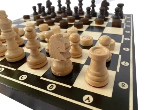 Zestaw szachowy powstał z najwyższej jakości drewna, nadając mu nie tylko eleganckiego wyglądu, ale równie ważną wytrzymałość. To więcej niż gra – to sposób na rozwijanie umiejętności, które mogą przekładać się na różne aspekty życia.