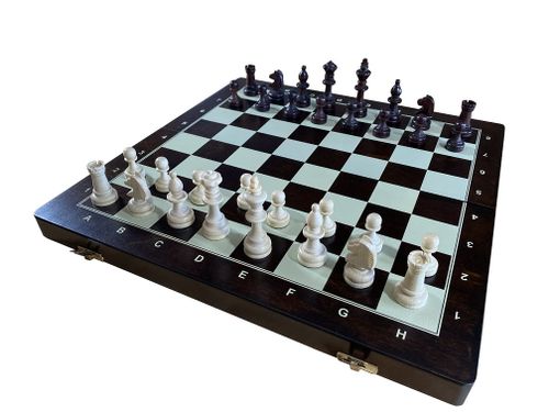 Szachy turniejowe 4 to jeden z kompletów szachowych typu Staunton o rozmiarze króla 80mm. Szachownica w kolorze ciemnobrązowym wykonana została przy użyciu techniki sitodruku. Szachownica wyposażona jest w ozdobną wkładkę służącą do przechowywania figur szachowych zamykana jest na eleganckie zatrzaski.