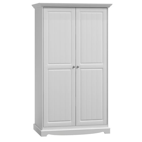 Szafa sosnowa biała dwudrzwiowa. Wykonana z wysokiej jakości drewna sosnowego fińskiego w ciepłym białym kolorze. Dzięki ekologicznym lakierom drewno zachowuje swój naturalny wygląd. Posiada jedną półkę na ubrania oraz drążek.