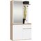 Oferujemy Państwu praktyczną szafę do przedpokoju z lustrem ENTRO, która jest idealnym rozwiązaniem dla tych, którzy cenią funkcjonalność i styl w jednym. Dzięki tej szafie maksymalnie wykorzystasz dostępną przestrzeń w wąskim korytarzu lub wiatrołapie. Model ENTRO o szerokości 95 cm, wysokości 183 cm i głębokości 35 cm, zapewni miejsce dla Państwa płaszczy, kurtek oraz codziennych przedmiotów. Została wykonana z odpornej na ścieranie płyty laminowanej i wyposażona w uchylne drzwiczki z frontami w kolorze białym, co idealnie współgra z korpusem wykończonym w dekorze Dąb Sonoma.
