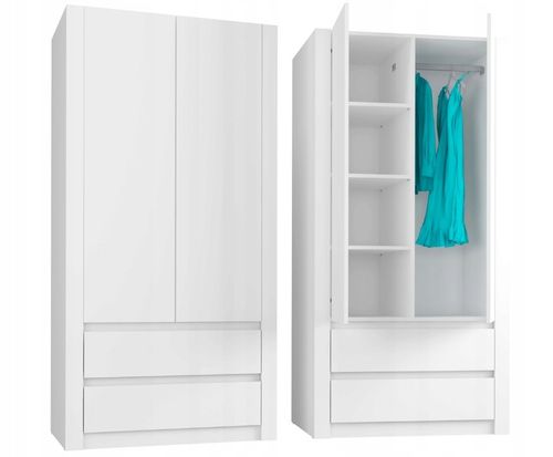 Szafa gwarantuje pełną funkcjonalność w codziennym użytkowaniu, z ergonomicznymi wymiarami umożliwiającymi swobodne umeblowanie pomieszczenia. Dodatkowa szuflada o precyzyjnych gabarytach pozwala na dyskretne przechowywanie drobiazgów, a biały kolor pleców i frontów nadaje wnętrzu lekkości i świeżości, bez kompromisów w kwestii estetyki i praktyczności.