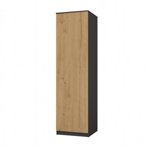 Szafa dostępna jest w eleganckim kolorze antracytowym oraz dębie artisan, co sprawia, że doskonale wpasuje się w różnorodne aranżacje wnętrz. Jej minimalistyczna konstrukcja wyróżnia się lekką, prostą formą, co czyni ją idealnym dodatkiem do nowoczesnych przestrzeni.