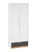 Nowoczesna szafa to podstawowy mebel w każdym pokoju młodzieżowym, dlatego w systemie TORRO została stworzona funkcjonalna dwudrzwiowa szafa. Za frontami na długim drążku dziecko może powiesić dłuższe ubrania lub koszulki, a na półkach poukładać resztę ubrać. A na dole w szafie dodano pojemną szufladę, w której można pochować resztę rzeczy. Kolorystyka mebla została dobrana tak, aby szafa pasowała do pokoju chłopca i dziewczynki.