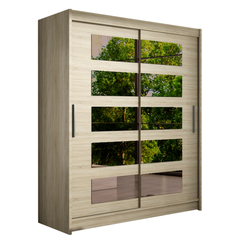Dwudrzwiowa szafa z systemem drzwi przesuwnych ułatwiająca codzienne użytkowanie. Nowoczesna, funkcjonalna oraz elegancka. Zaprojektowana z myślą o bezpiecznym przechowywaniu odzieży, jak i innych rzeczy osobistych. Doskonale sprawdzi się w sypialni, pokoju dziennym lub przedpokoju.