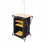 Ta składana szafka kempingowa wyróżnia się nie tylko eleganckim i stylowym wyglądem, ale przede wszystkim doskonałą funkcjonalnością. Z trzema półkami bambusowymi i trzema haczykami zapewnia przestrzeń do przechowywania wszystkich niezbędnych akcesoriów podczas Twojej przygody na kempingu.