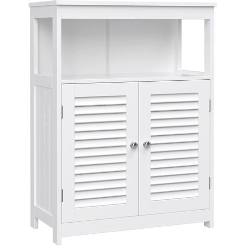 Szafka w białym kolorze na pewno wpasuje się w wystrój niejednego pomieszczenia.