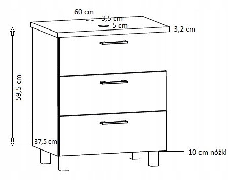 • Wysokość: 72,6 cm (wraz z nóżkami 10 cm i blatem 3,2 cm)