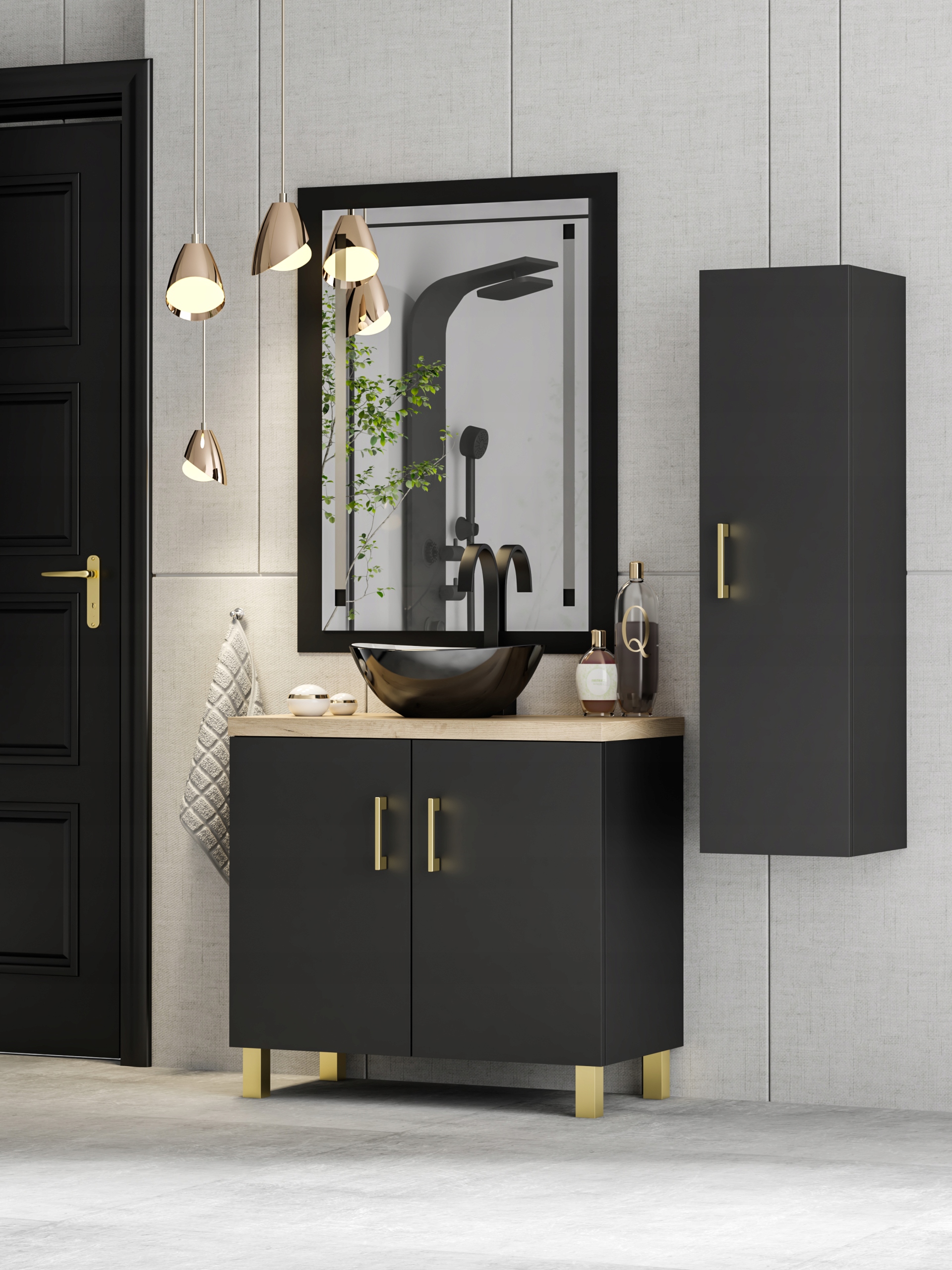 Szafka ROCO zapewnia wyjątkową pojemność, z dwoma dużymi półkami, które pomieszczą wszystkie niezbędne przybory łazienkowe. Dzięki zastosowaniu zawiasów z cichym domykiem, codzienne użytkowanie będzie komfortowe i bezgłośne. Podwójne drzwi można otworzyć za pomocą eleganckich uchwytów w kolorze czarnym, srebrnym lub złotym, które pasują do każdej aranżacji.