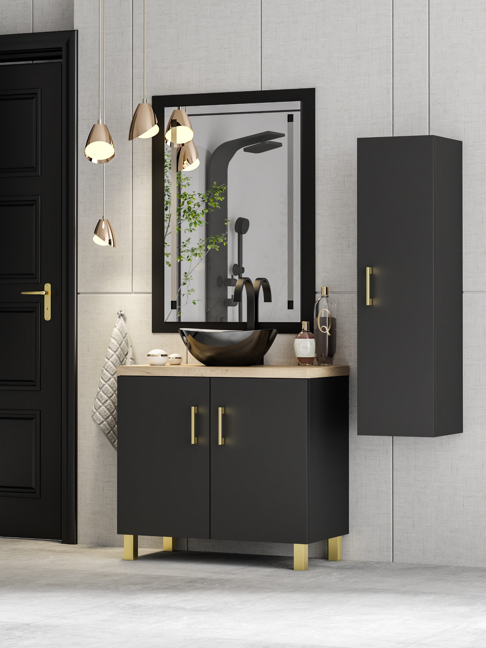 Odkryj szafkę łazienkową ROCO 60 z czarną umywalką nablatową Eliza, która doda elegancji i funkcjonalności Twojej łazience! Ta wolnostojąca szafka to idealne połączenie stylu i praktyczności. Dzięki przestronnemu wnętrzu, z łatwością pomieścisz wszystkie potrzebne akcesoria łazienkowe. Co wyróżnia szafkę ROCO 60? Stylowy design z matowym wykończeniem w kolorze czarny, dąb craft złoty, który idealnie dopełni każde wnętrze. Solidna konstrukcja, wykonana z płyty laminowanej o grubości 18 mm, co zapewnia trwałość na lata. Przemyślana przestrzeń z jedną wewnętrzną półką, która pozwala na uporządkowanie wszystkich kosmetyków i akcesoriów. Ciche domykanie drzwiczek, które eliminuje nieprzyjemne trzaśnięcia i hałasy. Regulowane nóżki z aluminium i tworzywa, umożliwiające dopasowanie do nierównych powierzchni. Łatwy montaż dzięki dołączonej, czytelnej instrukcji. Parametry techniczne szafki: Głębokość: 40,5 cm Szerokość: 60,5 cm Wysokość: 72,6 cm (z nóżkami) Otwór pod baterię: 3,5 cm Otwór pod umywalkę: 5 cm Specyfikacja umywalki ELZA: Wysokość: 14 cm Szerokość: 41 cm Głębokość: 33,5 cm Kolor: Czarny ( zewnątrz) Biały ( wewnątrz) Materiał: Ceramika sanitarna Nie czekaj! Szafka ROCO 60 to doskonały wybór dla każdego, kto chce stworzyć elegancką i funkcjonalną łazienkę. Sprawdź też inne produkty z oferty ADK Meble i stwórz wymarzoną przestrzeń w swoim domu!