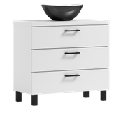 Szafka ROMA wyróżnia się prostym, ale zarazem eleganckim wyglądem, który doskonale pasuje do różnych stylów wnętrz – od skandynawskiego, przez loftowy, po minimalistyczny. Trzy przestronne szuflady umożliwiają wygodne przechowywanie akcesoriów łazienkowych, nawet tych większych. Symetryczna konstrukcja szuflad nadaje szafce nowoczesny charakter, jednocześnie oferując optymalną organizację przestrzeni.