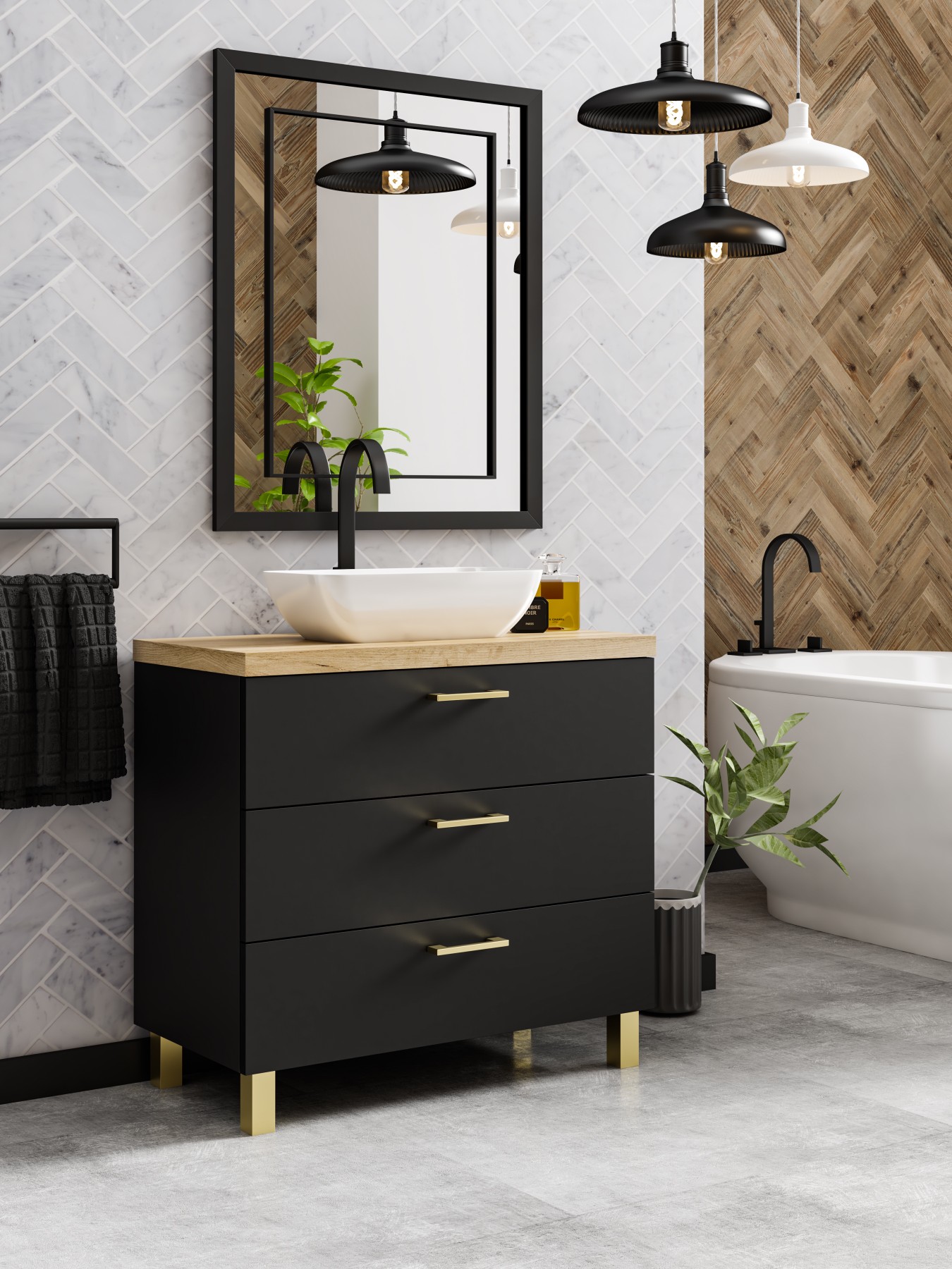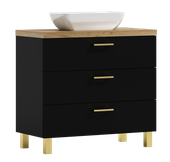 Szafka ROMA wyróżnia się prostym, ale zarazem eleganckim wyglądem, który doskonale pasuje do różnych stylów wnętrz – od skandynawskiego, przez loftowy, po minimalistyczny. Trzy przestronne szuflady umożliwiają wygodne przechowywanie akcesoriów łazienkowych, nawet tych większych. Symetryczna konstrukcja szuflad nadaje szafce nowoczesny charakter, jednocześnie oferując optymalną organizację przestrzeni.