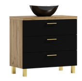 Szafka ROMA wyróżnia się prostym, a jednocześnie eleganckim wyglądem. To świetny wybór, jeśli szukasz mebla, który idealnie wpasuje się w różne style wnętrz, od skandynawskiego po minimalistyczny. Co więcej, dzięki trzem przestronnym szufladom masz idealną okazję do łatwego przechowywania akcesoriów łazienkowych. Oto, co można wyróżnić: