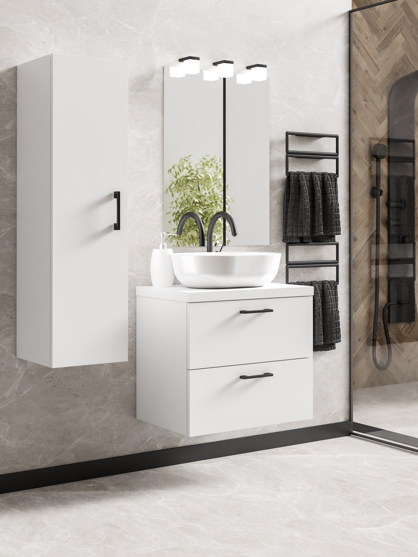 Podwieszana Szafka Łazienkowa z Umywalką LUNA 50