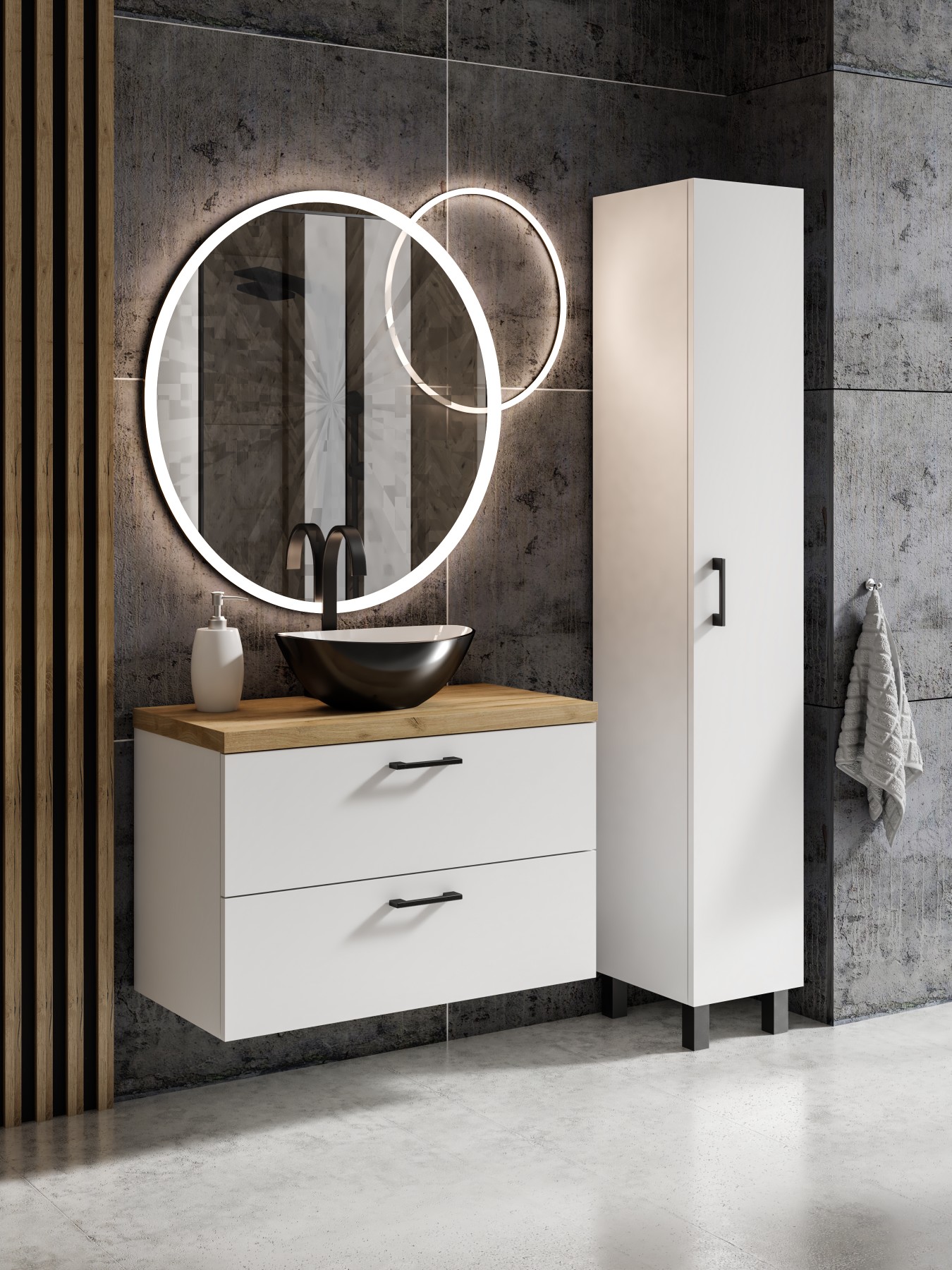 Szafka łazienkowa LUNA 80 z umywalką nablatową to idealne rozwiązanie dla tych, którzy cenią sobie nowoczesny design oraz funkcjonalność. Wykonana z wysokiej jakości płyty laminowanej, w eleganckim białym kolorze, doda Waszej łazience luksusowego charakteru.