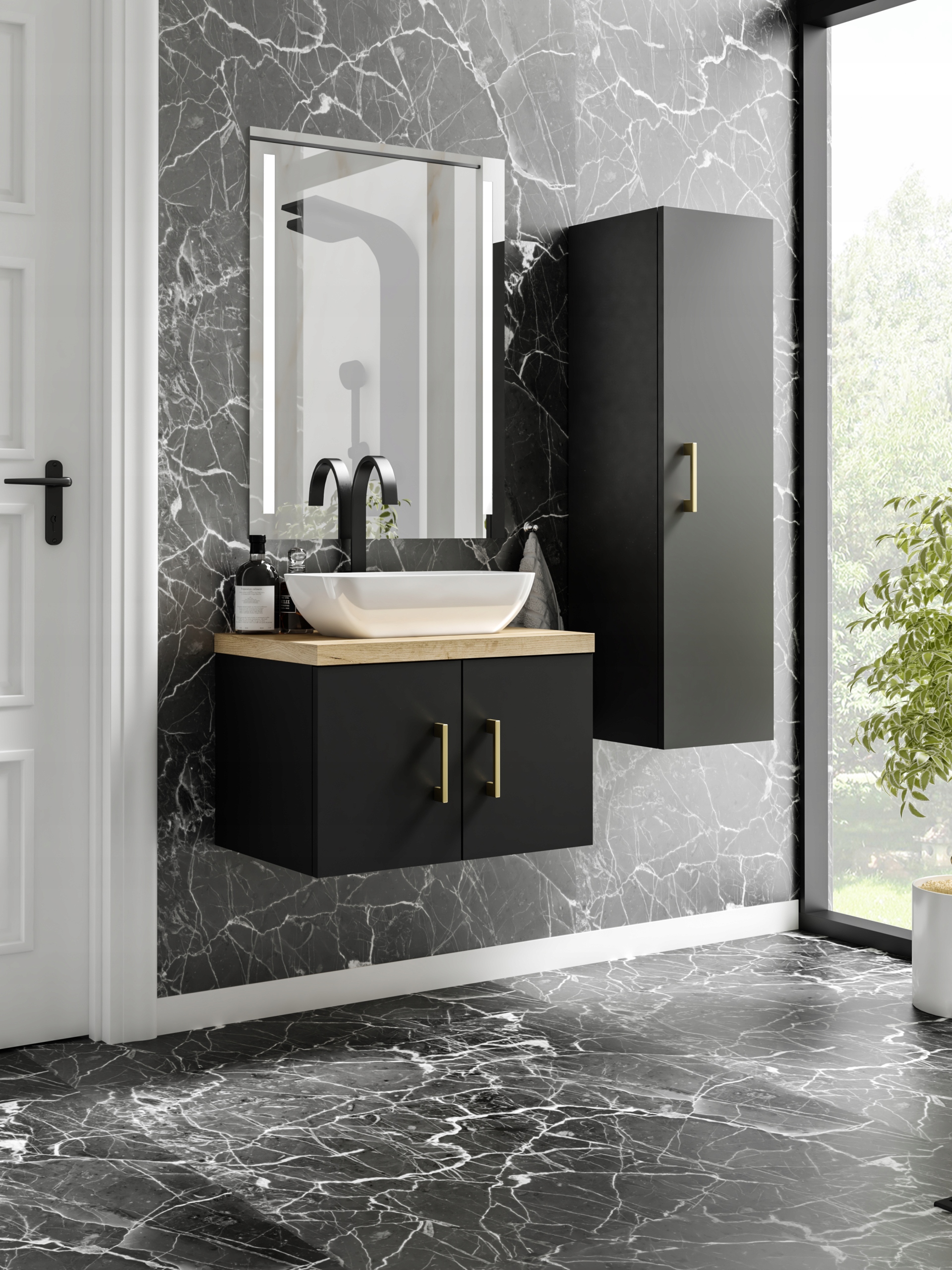 Szafka łazienkowa MARKUS 50 to funkcjonalny mebel, zaprojektowany z myślą o optymalnym wykorzystaniu przestrzeni w łazience, zachowując przy tym elegancki wygląd i dużą pojemność. Dzięki prostemu designowi, szafka doskonale wpasuje się w różne aranżacje wnętrz, oferując wygodę i porządek w przechowywaniu przyborów łazienkowych.