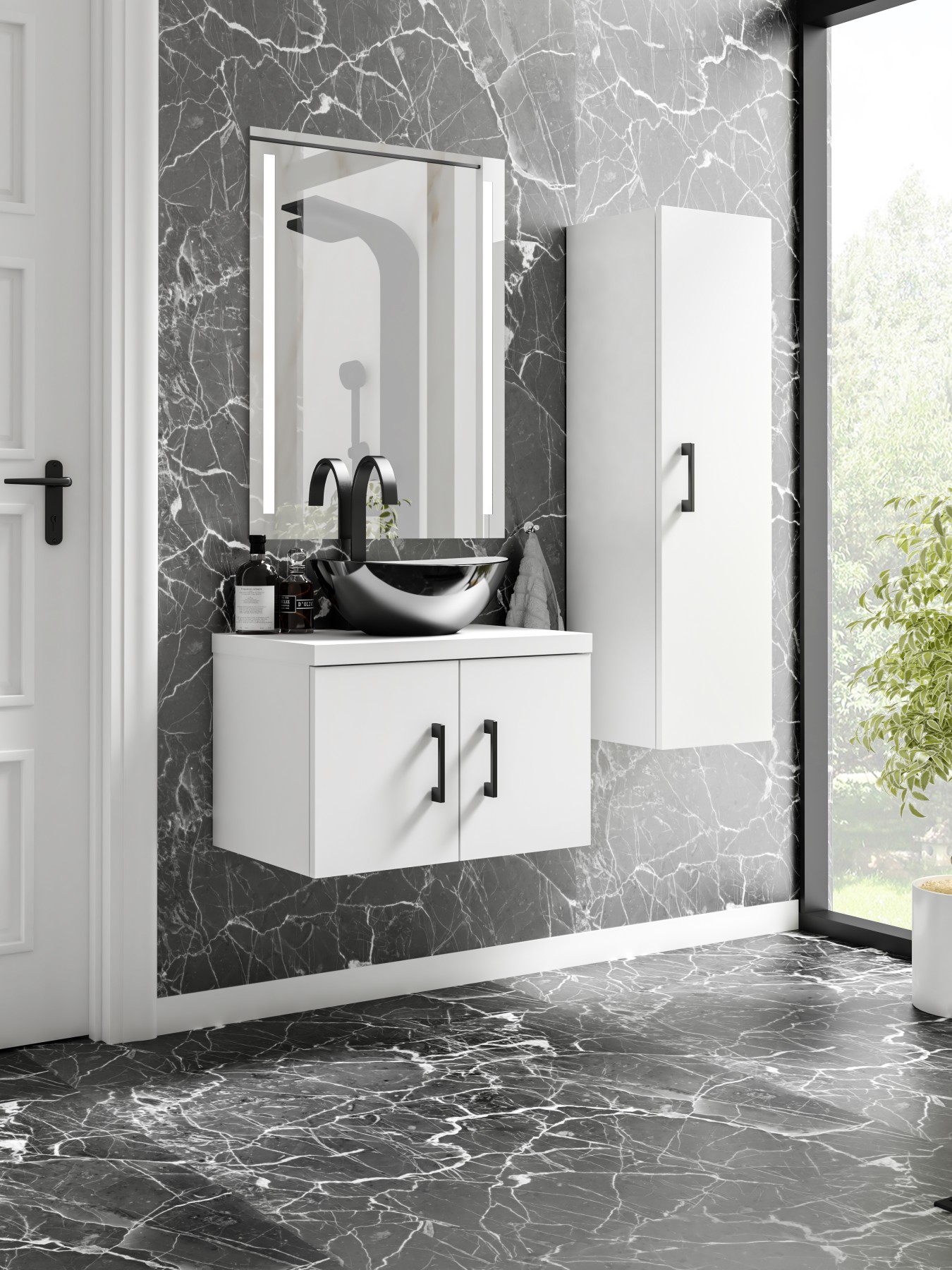Podwieszana szafka łazienkowa MARKUS została zaprojektowana z myślą o maksymalnej funkcjonalności w małych przestrzeniach. Mimo kompaktowych rozmiarów, oferuje dużą przestrzeń do przechowywania przyborów łazienkowych. Można ją połączyć z słupkiem łazienkowym z tej samej kolekcji, który dostępny jest w naszej ofercie.