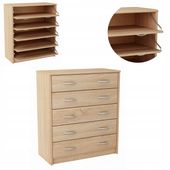 Ta szafka na buty 5S SONOMA to solidny regał o pojemnej konstrukcji, wykonany z wysokiej jakości płyty laminowanej o grubości 16 mm, która wyróżnia się zwiększoną odpornością na zarysowania, ścieranie i wilgoć. Zbudowana z pięciu praktycznych kontenerków z uchylnymi drzwiczkami, zapewnia łatwy dostęp do obuwia i utrzymuje porządek w codziennym użytkowaniu.