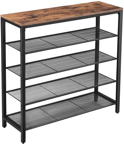 Półki w formie siatki są nie tylko nowoczesne, ale także bardzo funkcjonalne. Dzięki nim możesz z łatwością przechowywać buty zarówno dla dorosłych, jak i dla dzieci, włączając w to te najmniejsze modele. Dodatkowo, idealnie spasowane elementy ramy oraz rustykalny kolor dodają meblowi klasy, dzięki czemu stanie się on nie tylko meblem, ale również designerskim akcentem w Twoim wnętrzu.