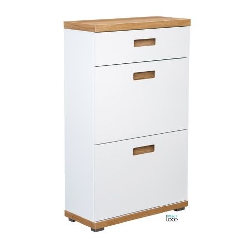 Odkryj nowy wymiar aranżacji wnętrz z szafką na buty Leida 2 z szufladą! Nasza szafka to połączenie nowoczesnego designu i funkcjonalności, dzięki czemu stanie się idealnym elementem każdego przedpokoju. Wyróżnia ją stylowy białych połysk oraz eleganckie akcenty wykonane z dębu naturalnego fornir, co tworzy niepowtarzalny efekt wizualny. Stwórz harmonijną przestrzeń, w której porządek spotyka się z estetyką.
