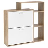 Ta wysokiej jakości szafka na buty Zefir model z regałem charakteryzuje się nie tylko kompaktowym i eleganckim designem, ale także wyjątkową funkcjonalnością. Posiada dwa uchylne fronty z dwupoziomowymi przegródkami, które pozwalają na uporządkowane przechowywanie do 12 par obuwia, zapewniając łatwy i szybki dostęp do każdej pary bez bałaganu.