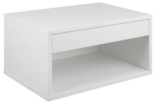 Wisząca szafka nocna Cholet wykonana z płyty MDF, która została pokryta czarnym lakierem. Posiada szufladę na metalowych prowadnicach, jest to gwarancja wygody i bezpieczeństwa. Możesz w niech schować swoje prywatne rzeczy, tak by byłe one niewidoczne dla innych. Szuflada bez uchwytów sprawia, że cała konstrukcja jeszcze bardziej zyskuje na elegancji. Mebel posiada jeszcze otwartą półkę, na której możesz położyć swoje ulubione książki lub inne dekoracje. Szafka dostępna w kolorze czarnym i białym.
