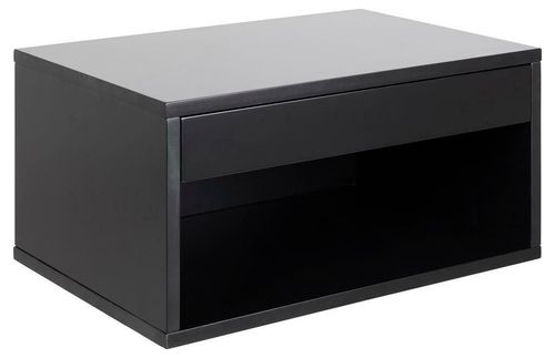 Wisząca szafka nocna Cholet wykonana z płyty MDF, która została pokryta czarnym lakierem. Posiada szufladę na metalowych prowadnicach, jest to gwarancja wygody i bezpieczeństwa. Możesz w niech schować swoje prywatne rzeczy, tak by byłe one niewidoczne dla innych. Szuflada bez uchwytów sprawia, że cała konstrukcja jeszcze bardziej zyskuje na elegancji. Mebel posiada jeszcze otwartą półkę, na której możesz położyć swoje ulubione książki lub inne dekoracje. Szafka dostępna w kolorze czarnym i białym.