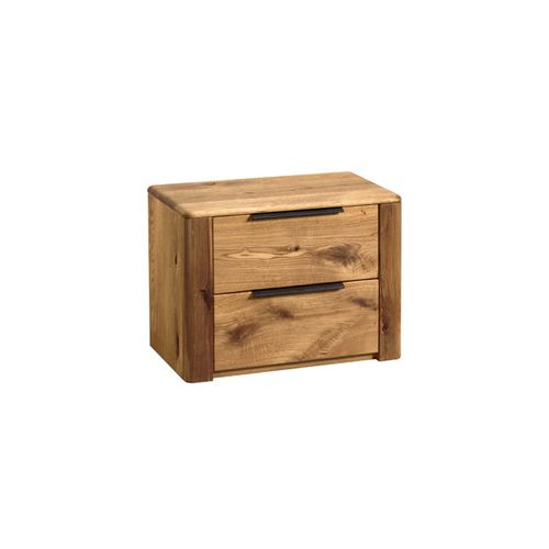 Nakastlik to jeden z najbardziej przydatnych mebli w sypialni, niewielkich gabarytów, a jednak bardzo potrzebny. Wykonany z drewna dębowego szczotkowanego, woskowanego i olejowanego dla utrzymania jego naturalnego wyglądu. Zaokrąglone rogi i czarne uchwyty dopasowane do pozostałych mebli z kolekcji współgrają z nieco rustykalnym stylem stolika nocnego. Dębowe fronty zostały wykończone w specyficzny sposób, z rozmysłem bowiem nie zaprawione zostały sęki i niedobory drewna aby nadać meblu jeszcze więcej naturalności i charakteru. W szufladach zastosowane zostały prowadnice z cichym domykiem dla większej wygody użytkowania.