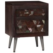 Ta drewniana szafka nocna z litego drewna będzie zarówno ozdobnym, jak i praktycznym dodatkiem do Twojego wystroju wnętrza. Może posłużyć również jako dodatkowy blat, stolik na kwiaty lub pod telefon. Szafka jest wykonana z litego drewna z odzysku pochodzącego z belek stropowych, podłóg i belek nośnych z rozbiórki starych budynków i może składać się z różnych rodzajów drewna, takich jak sosna, tek, buk, dąb, cedr, drewno mango, akacja itp. Oznacza to, że odzyskany materiał zachowuje właściwości tych różnych rodzajów drewna. Odzyskane drewno jest już postarzane, zwietrzałe i wysuszone, dzięki czemu nie kurczy się ani nie wygina. Piękne usłojenie sprawia, że każdy mebel jest wyjątkowy i nieco inny od pozostałych. Ślady zużycia i widoczna struktura słojów świadczą o bogatej historii drewna i nadają meblowi ciepły i autentyczny wygląd. Każdy etap procesu produkcji jest wykonywany z największą starannością, czy to szlifowanie, malowanie czy lakierowanie. Zaprojektowany z dużą ilością miejsca do przechowywania, szafka nocna zapewnia porządek i łatwy dostęp do drobnych przedmiotów. Na blacie szafki możesz postawić budzik i szklankę wody, ale także przedmioty dekoracyjne, takie jak ramki na zdjęcia. Stalowe nogi dodają mu solidności i oszałamiającego stylu industrialnego. Montaż jest łatwy. Ważna uwaga: kolory i usłojenie poszczególnych egzemplarzy mogą się różnić, co sprawia, że każda z naszych szafek nocnych jest niepowtarzalna. Wysyłka odbywa się losowo, dzięki czemu otrzymasz absolutnie wyjątkowy produkt.