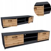 Ta szafka RTV 2DC o szerokości 160 cm wyróżnia się solidną konstrukcją z płyty laminowanej o grubości 16 mm, która zapewnia wyjątkową odporność na codzienne wyzwania. Z dwiema szafkami po bokach i regulowaną półką w centralnej wnęce, idealnie organizuje przestrzeń pod telewizor, pozwalając na swobodne aranżowanie sprzętów i akcesoriów.