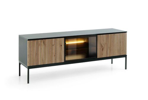 Szafka RTV Novel dąb wotan/czarny to rozwiązanie, które przekształci Twoją przestrzeń w stylowe i funkcjonalne miejsce do relaksu. Nie czekaj – stwórz wyjątkową atmosferę w swoim domu już teraz!