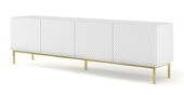 Szafka RTV Ravenna C 200 cm 4D to doskonały wybór dla osób, które pragną wprowadzić do swojego salonu nie tylko funkcjonalność, ale także elegancję. Ta nowoczesna szafka w biały mat z frontami w biały połysk diament to kwintesencja stylu, który z pewnością przyciągnie wzrok każdego gościa. Jej minimalistyczny design, oparty na prostych bryłach i metalowych ramach, nadaje wnętrzu lekkości oraz wyjątkowego charakteru.