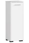 Biała szafka łazienkowa stojąca stanowi bardzo praktyczny i elegancki w swej prostocie mebel. Dzięki niewielkim wymiarom znajdzie zastosowanie także w łazienkach o niewielkim metrażu. Pojemne półki szafki pomieszczą ręczniki, środki czystości lub zapasowe mydła czy kosmetyki. Szafkę można również przeznaczyć na łazienkową wagę, sprzęt do stylizacji włosów lub masażer do stóp. Znajdujący się na wygodnej wysokości blat szafki może być przeznaczony na codziennie stosowane kosmetyki i perfumy lub ozdobne lusterko do makijażu. Szafka została wykonana z płyty laminowanej, która jest odporna na działanie wilgoci oraz ścieranie. Mebel wykończono wytrzymałą i nieodbarwiającą się okleiną z melaminy. Szafkę można dowolnie często myć bez obawy zniszczenia jej powierzchni. Biała szafka łazienkowa stojąca pasuje do łazienek z jasną i ciemną glazurą, a także klasycznych i urządzonych w stylu retro ze złoconą armaturą. Mebel w połączeniu z pochodzącą z tej samej kolekcji szafką pod umywalkę będzie atrakcyjnym pod względem wizualnym i funkcjonalnym wyposażeniem łazienki.