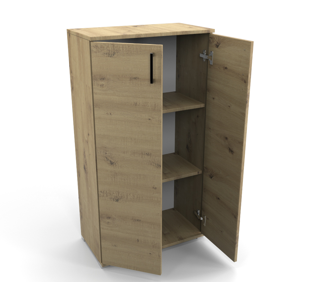 Szafka łazienkowa Pola 60 cm 2D została wykonana z wysokiej jakości, laminowanej płyty odpornej na wilgoć, wykończona w pełnym, ponadczasowym odcieniu dąb Artisan. Posiada trzy pakowne półki, dzięki którym w łazience zapanował porządek, a wszystkie najpotrzebniejsze rzeczy są zawsze w zasięgu ręki. Kompaktowe wymiary (wysokość 110 cm, szerokość 60 cm, głębokość 32 cm) sprawiają, że mebel doskonale sprawdzi się zarówno w niewielkiej, jak i w średniej łazience. Obrzeża zostały zabezpieczone wytrzymałą taśmą PCV, a korpus i front wykonano ze specjalnych płyt, które wytrzymają lata użytkowania w trudnych, łazienkowych warunkach. Z tyłu mebla – plecy z płyty HDF – zapewniające odpowiednią sztywność i solidność konstrukcji. Matowe wykończenie nie tylko wygląda szlachetnie, ale i ułatwia zachowanie czystości.