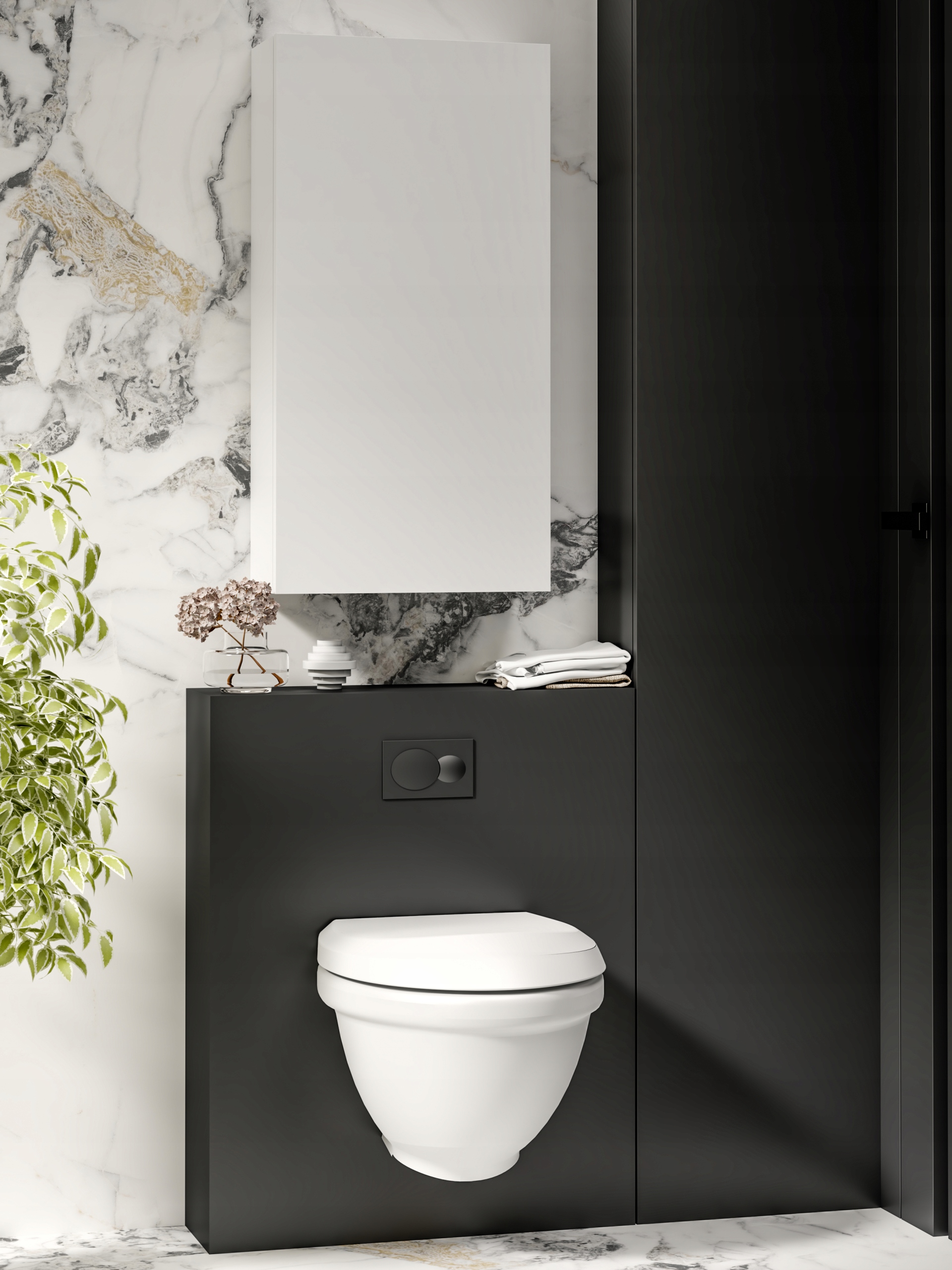 Nasza szafka idealnie pasuje do systemu Geberit, co czyni ją praktycznym wyborem do każdej przestrzeni. Montaż jest łatwy, dzięki zawieszkom z regulacją poziomu, które zapewniają stabilność i bezpieczeństwo.