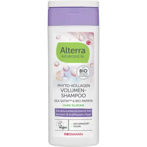 Alterra NATURKOSMETIK szampon z fitokolagenem – naturalny szampon stworzony z myślą o włosach cienkich i pozbawionych objętości. Dzięki unikalnej formule z Phyto-Kolagenem, kompleksem Sea Satin™ oraz ekstraktem z bio-papai, produkt nie tylko dodaje włosom objętości, ale również wzmacnia ich strukturę, pozostawiając je miękkie i pełne blasku.