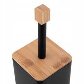 Wolnostojący stojak na papier toaletowy i szczotkę WC stanowi doskonałe połączenie praktyczności i eleganckiego designu. Wykonany z wysokiej jakości stali malowanej na czarny mat i drewna bambusowego, prezentuje się niezwykle stylowo, dodając łazience przytulnego, a zarazem nowoczesnego charakteru.