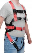 ✔️**Dwupunktowy system zaczepowy** – Tylny grzbietowy punkt w kształcie D i przedni z karabińczykiem oraz pętlami zapewniają wszechstronną ochronę przed upadkiem i wsparcie w akcjach ratunkowych.
