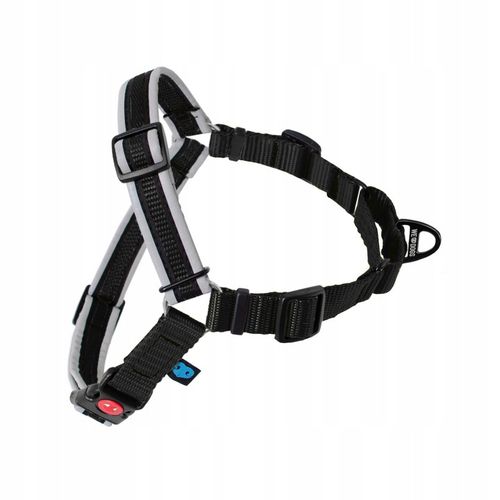 Obszyte, delikatne krawędzie taśm chronią skórę Twojego pupila przed otarciami, a bardzo silne odblaski zapewniają doskonałą widoczność podczas spacerów o zmierzchu lub w nocy. Klamry z blokadą przeciwdziałają przypadkowemu wypięciu, dbając o Twoją i psa bezpieczeństwo.