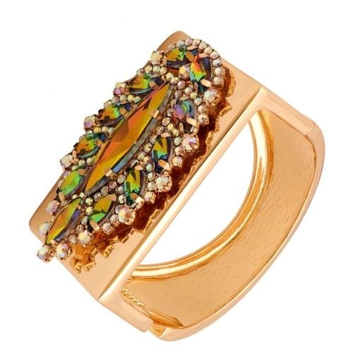 Niezwykle kolorowa bransoletka z kamieniami Wymiary bransoletki średnica 7 cm, szerokość 3,8 cm Ze względu na różne ustawienia monitorów oraz różną jakość wyświetlaczy zastosowanych w urządzeniach mobilnych, kolory przedstawione na zdjęciach mogą nieznacznie różnić się od rzeczywistych. Dokładamy wszelkich starań, aby na stronie Sklepu przedstawiać tylko realne zdjęcia produktów, jak najbardziej zbliżone do rzeczywistości. Stal szlachetna pozłacana. Gwarancja pozłocenia i jakości. Warstwa złota naniesiona w metodzie - PVD- napylanie próżniowe jonami tytanu, czy też azotkiem tytanu jest nowoczesną metodą nanoszenia powłok o bardzo dużej trwałości. * Pokryte jest w całości 4 - 8 mikronową warstwą 14K, 18K i 24K złota. * Warstwa złocenia pokryta jest lakierem jubilerskim, który zabezpiecza powłokę złota przed ścieraniem i nadaje wspaniały połysk * Biżuteria wykonana ze stali szlachetnej-należy do grupy stali o strukturze austenitycznej ( podobna chirurgiczna 316 L) : - jest hipoalergiczna i nie uczula, ponieważ nie emituje związków niklu do organizmu - nie koroduje, nie odbarwia się i długo cieszy swoim blaskiem - ścieralność uzależniona od noszenia i od pH ciała - nie wymaga specjalnej konserwacji jak biżuteria ze srebra czy złota