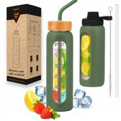 Butelka gwarantuje pełną wygodę w każdym środowisku, od biura po siłownię, dzięki wodoodpornej i antypoślizgowej silikonowej osłonie z okienkiem do kontroli poziomu. Jej trwała konstrukcja z odpornego szkła borokrzemowego zapewnia niezawodność nawet w podróży samochodowej czy na szlaku, umożliwiając Ci utrzymanie nawyków bez kompromisów.