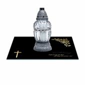 SZKLANA PODSTAWKA POD ZNICZE 40x30 cm dostępna z napisem - możliwość wyboru kroju pisma.
