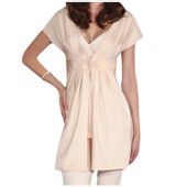 Szlafrok zakończony krótkim rękawem w stylu kimono, sięga do połowy ud, eksponując Twoje piękne nogi. Jego pastelowa kolorystyka z błyszczącymi satynowymi wstawkami sprawia, że każda chwila w nim spędzona staje się prawdziwą przyjemnością.